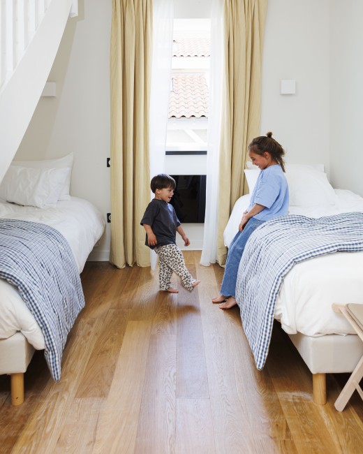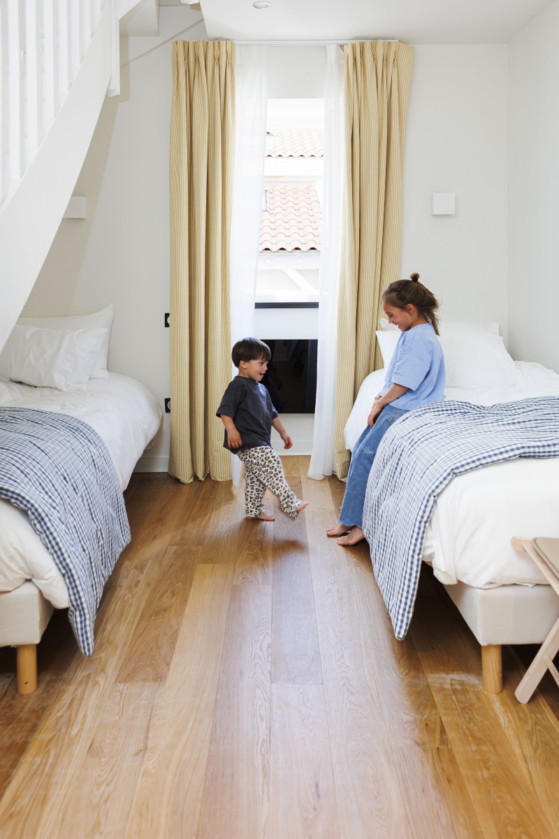 Claires et fraîches comme l’Atlantique, simples et chaleureuses comme une maison de vacances, les chambres sont dominées par des matières naturelles et et des couleurs douces. La décoration murale est le fruit d’une collaboration avec les Archives Départementales des Pyrénées-Atlantiques.