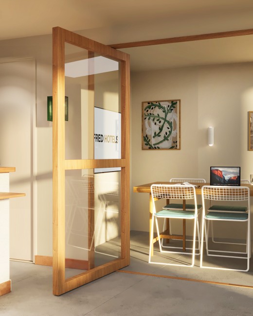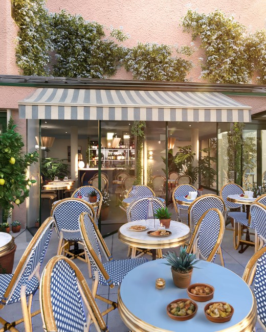 Difficile de deviner depuis la rue que les trois bâtiments de la sixième adresse ALFRED HOTELS tournent autour d'un double patio végétalisé. Véritable poumon vert au cœur de l'un des quartiers les plus dynamiques de la ville rose, cet espace est conçu dedans-dehors avec de larges baies vitrées et un sol unique. Ailleurs, l'hôtel s'amuse des codes 1980 et 1990 de ses années de construction et joue les variations du Bleu de Lectoure.