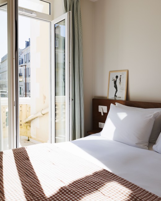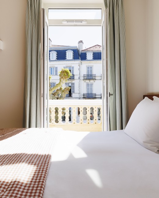 Claires et fraîches comme l’Atlantique, simples et chaleureuses comme une maison de vacances, les chambres sont dominées par des matières naturelles et et des couleurs douces. La décoration murale est le fruit d’une collaboration avec les Archives Départementales des Pyrénées-Atlantiques.