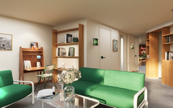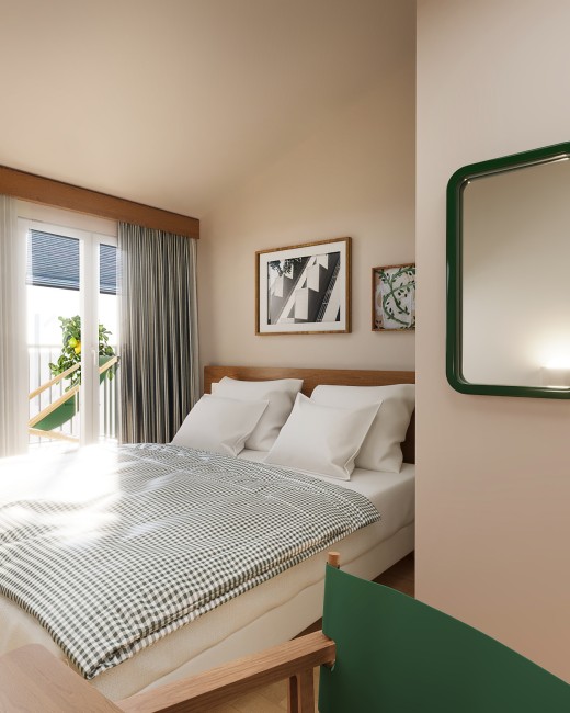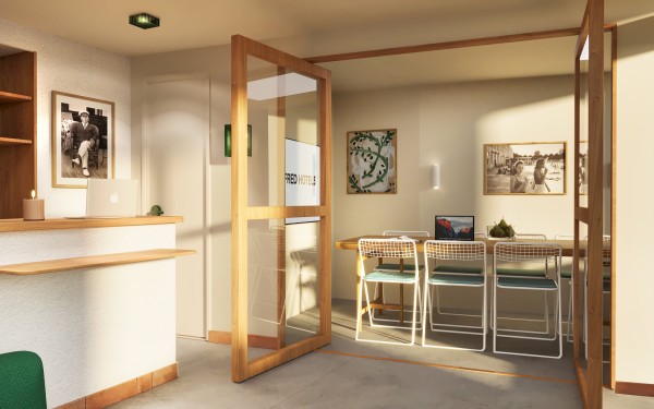 Difficile de deviner depuis la rue que les trois bâtiments de la sixième adresse ALFRED HOTELS tournent autour d'un double patio végétalisé. Véritable poumon vert au cœur de l'un des quartiers les plus dynamiques de la ville rose, cet espace est conçu dedans-dehors avec de larges baies vitrées et un sol unique. Ailleurs, l'hôtel s'amuse des codes 1980 et 1990 de ses années de construction et joue les variations du Bleu de Lectoure.